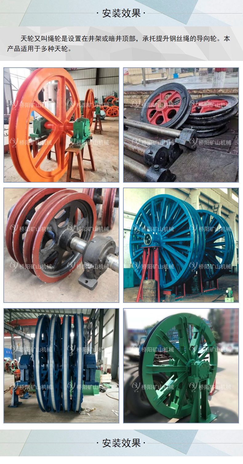 在天轮上安装衬垫,可避免天轮的磨损,并减少钢丝绳的磨损、延长钢丝绳的使用周期,从而降低更换天轮和钢丝绳的工作量。