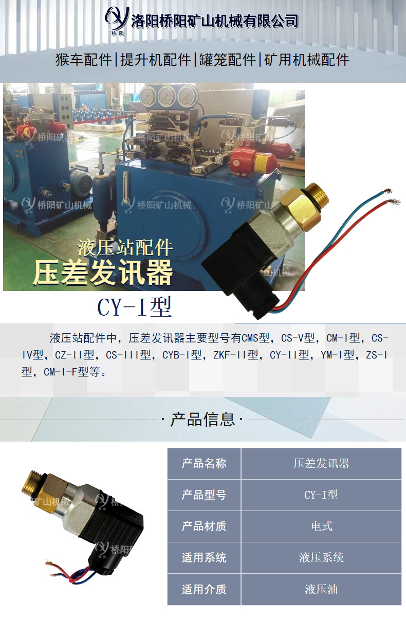 CS-III型压差发讯器的连接螺纹为M22×1.5.标准发讯值0.35电压DC24V,发讯器是宽电源,接DC或AC都可以的。不但以开关形式发出滤芯堵塞的声音讯号,并可以开关形式切断与液压系统相关的控制电路,达到主机和液压系统运行的目的。