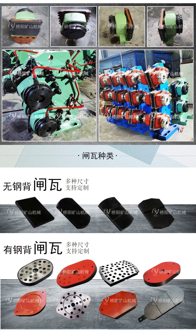 制动多是靠摩擦付的摩擦来实现的,是一个动能转变热能的过程,用作摩擦付的摩阻材料,首先是制动器正常运行保障。闸瓦是矿井提升机制动器的主要零件,如果闸瓦的摩擦系数等性能达不到设计要求,就会攸关设备能否正常运行。