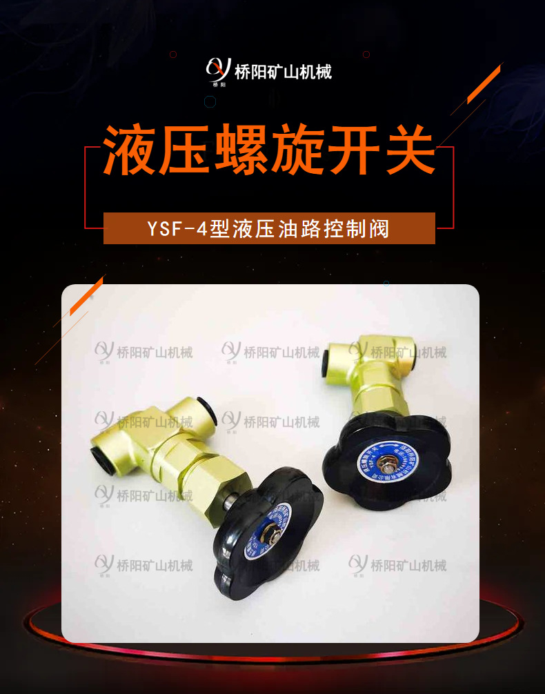 洛阳桥阳矿山机械有限公司主要生产猴车配件、提升机配件以及其他机械配件的厂家,液压螺旋开关是我公司的主要经营项目之一。本产品型号是YSF-4。本公司生产的液压螺旋开关采用的是碳钢材料加工而成,质量比较可靠。经多年的生产经营,产品普遍受到广大客户的欢迎。