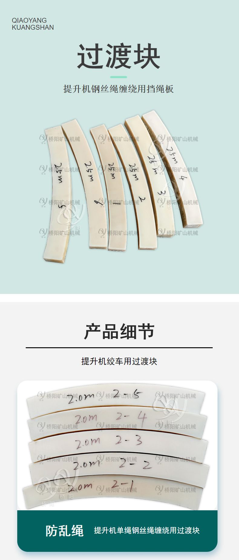 过渡块适用于单绳矿井提升机,钢丝绳缠绕多于1层但少于4层时使用。大于4层(含四层)则不适用。