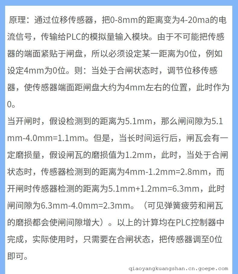 1.闸瓦间隙测量范围及精度:0~8 mm;误差:士0.01 mm2.空行程时间测量精度:误差:士2 ms